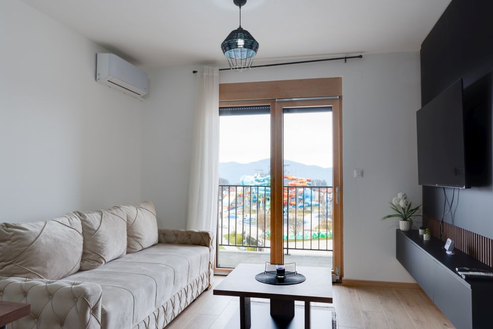 Central A51 je moderan apartman površine 40m², idealan za boravak do 4 osobe, smešten na odličnoj lokaciji u Vrnjačkoj Banji. Posebnu vrednost ovom prostoru daje terasa sa pogledom na Aqua Park Raj, koja pruža prijatan ambijent za jutarnju kafu ili večernje opuštanje. Enterijer je pažljivo uređen kako bi spojio funkcionalnost i komfor, dok potpuno opremljena kuhinja omogućava praktičan i bezbrižan boravak. Zahvaljujući atraktivnoj poziciji i blizini zabavnih i rekreativnih sadržaja, Central A11 predstavlja odličan izbor za porodice, parove i sve goste koji žele udoban smeštaj sa lepim pogledom i prijatnom atmosferom. Savršeno mesto za opušten i kvalitetan odmor u Banji.