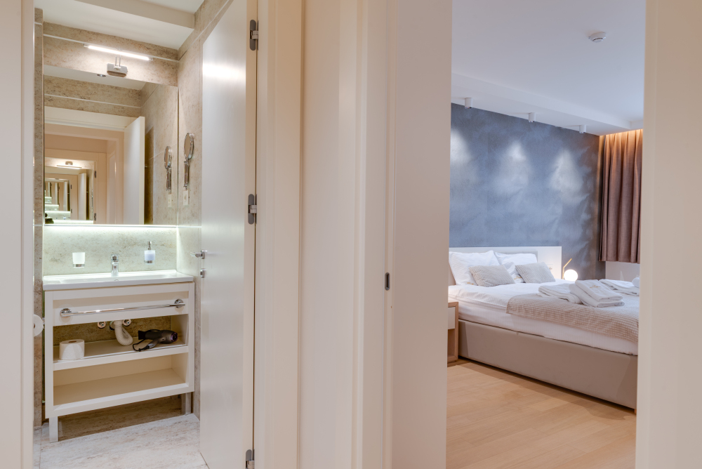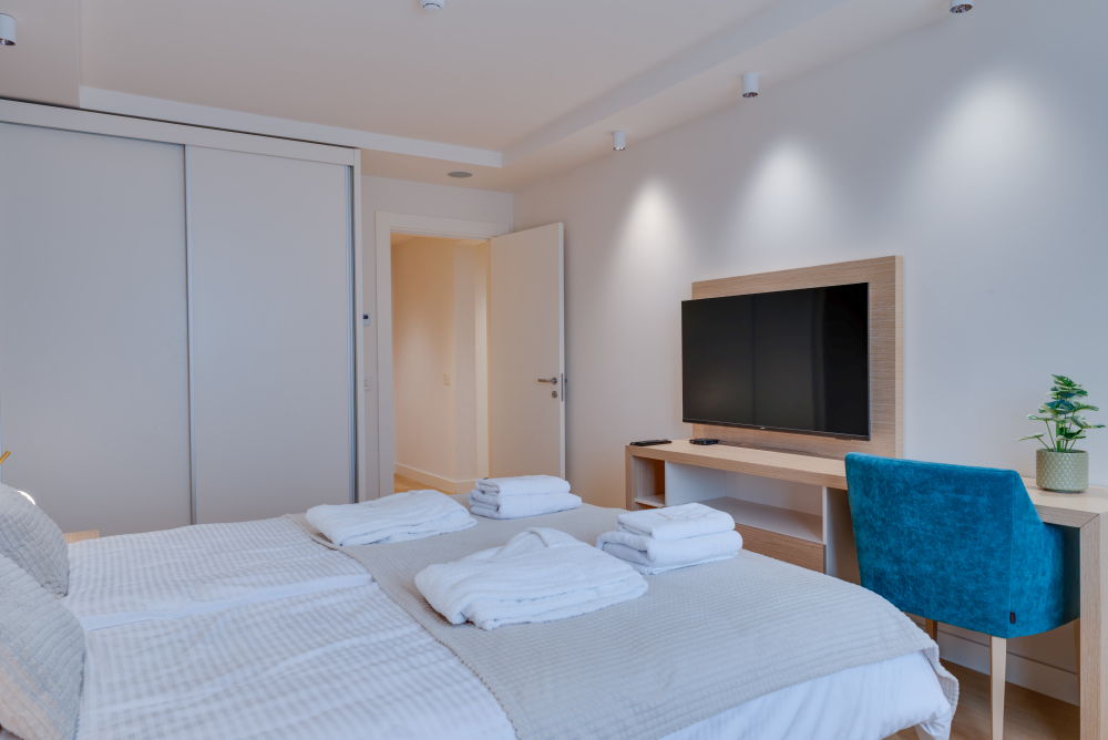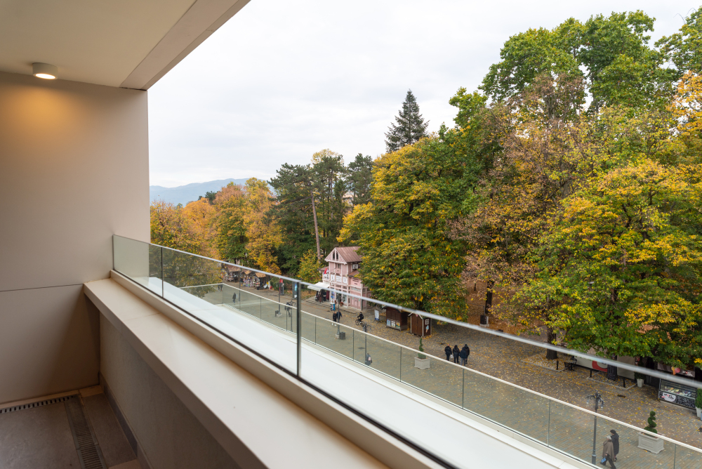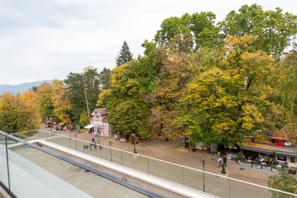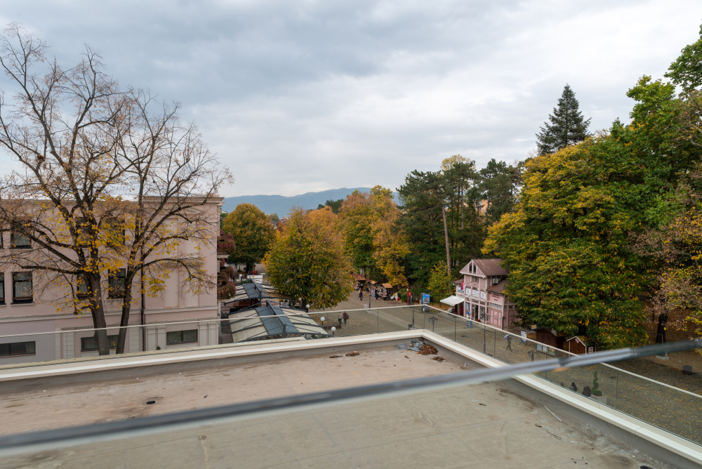 94m² Premium apartman predstavlja luksuzan smeštaj u samom centru Vrnjačke Banje, sa direktnim pogledom na šetalište i Promenadu. Namenjen je za udoban boravak do 6 osoba, idealan za porodice ili veće društvo koje želi prostran i sofisticiran prostor u srcu grada. Apartman površine 94m² raspolaže sa dve odvojene spavaće sobe i dva kupatila, pružajući maksimalnu privatnost i komfor tokom boravka. Prostrana terasa sa direktnim pogledom na šetalište omogućava jedinstven doživljaj banjske atmosfere, dok elegantno uređen enterijer i moderna oprema garantuju vrhunski nivo udobnosti. Gosti ostvaruju i ekskluzivne pogodnosti – 50% popusta na spa & wellness sadržaje i 20% popusta u restoranu hotela, čineći ovaj apartman savršenim izborom za luksuzan i nezaboravan odmor u Vrnjačkoj Banji.
