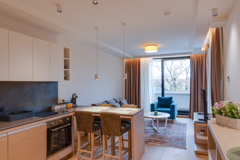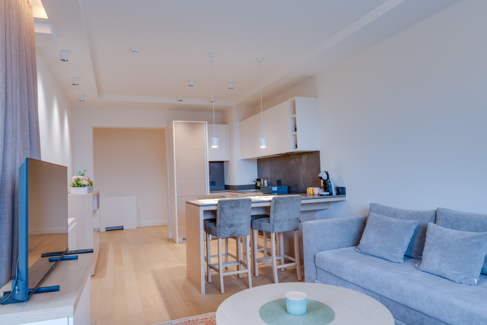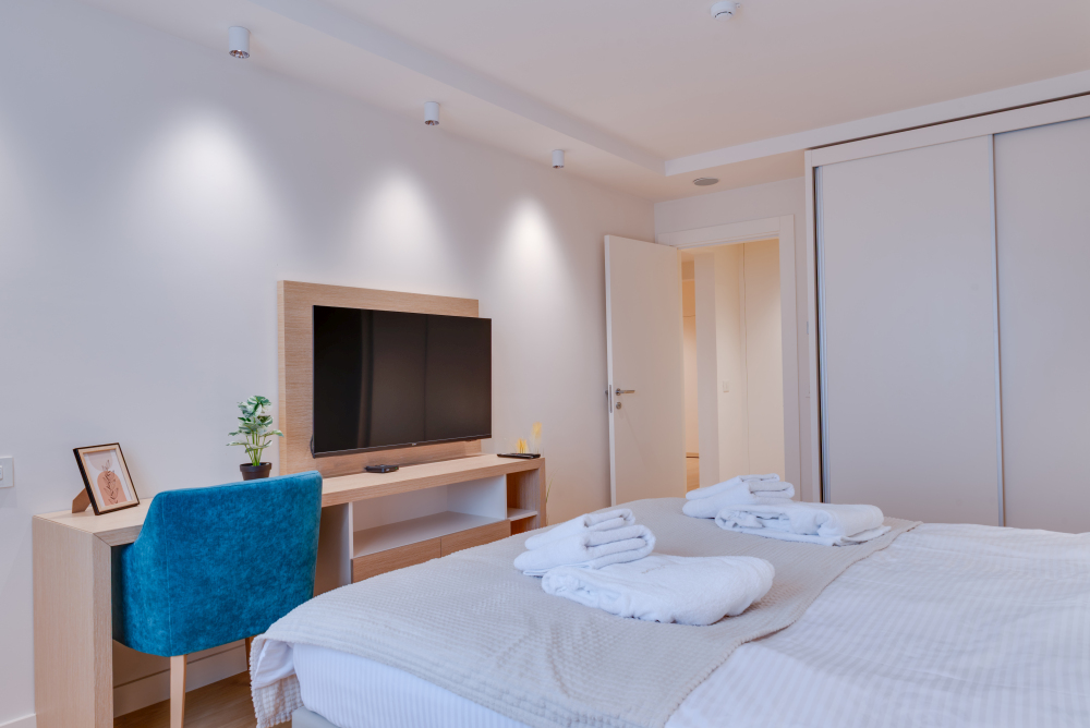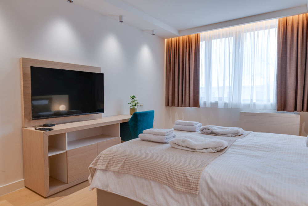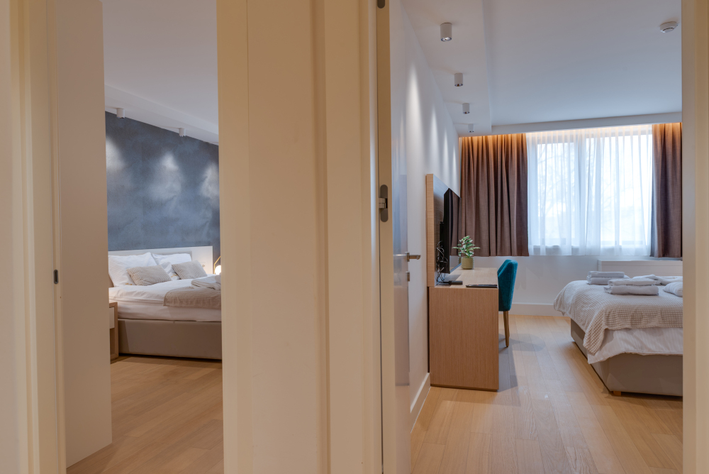 94m² Premium apartman predstavlja luksuzan smeštaj u samom centru Vrnjačke Banje, sa direktnim pogledom na šetalište i Promenadu. Namenjen je za udoban boravak do 6 osoba, idealan za porodice ili veće društvo koje želi prostran i sofisticiran prostor u srcu grada. Apartman površine 94m² raspolaže sa dve odvojene spavaće sobe i dva kupatila, pružajući maksimalnu privatnost i komfor tokom boravka. Prostrana terasa sa direktnim pogledom na šetalište omogućava jedinstven doživljaj banjske atmosfere, dok elegantno uređen enterijer i moderna oprema garantuju vrhunski nivo udobnosti. Gosti ostvaruju i ekskluzivne pogodnosti – 50% popusta na spa & wellness sadržaje i 20% popusta u restoranu hotela, čineći ovaj apartman savršenim izborom za luksuzan i nezaboravan odmor u Vrnjačkoj Banji.