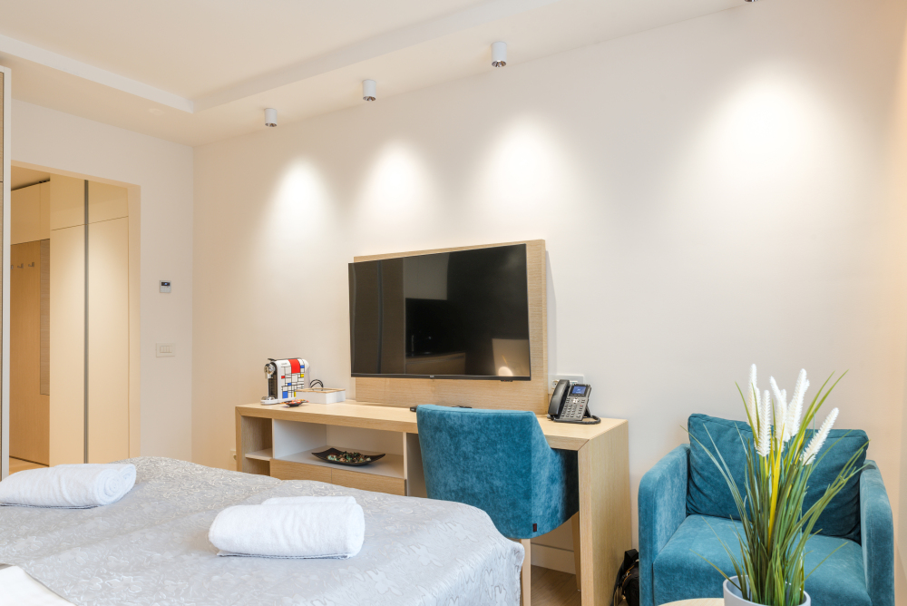 22m² studio apartman u Vrnjačkoj Banji predstavlja kompaktan i funkcionalan smeštaj u samom centru Vrnjačke Banje, idealan za boravak do 2 osobe. Ovaj moderno uređen studio apartman pažljivo je organizovan kako bi pružio maksimalan komfor na manjoj kvadraturi, uz prijatnu i opuštajuću atmosferu. Apartman poseduje praktičnu čajnu kuhinju, savršenu za kraći ili duži boravak, kao i sve neophodne sadržaje za bezbrižan odmor u Banji. Zahvaljujući prestižnoj lokaciji u blizini Zepterme spa & wellness centra, gosti ostvaruju i posebne pogodnosti – 50% popusta na spa & wellness sadržaje i 20% popusta u restoranu hotela, što ovaj studio čini odličnim izborom za parove i goste koji traže kvalitetan smeštaj u centru Vrnjačke Banje.