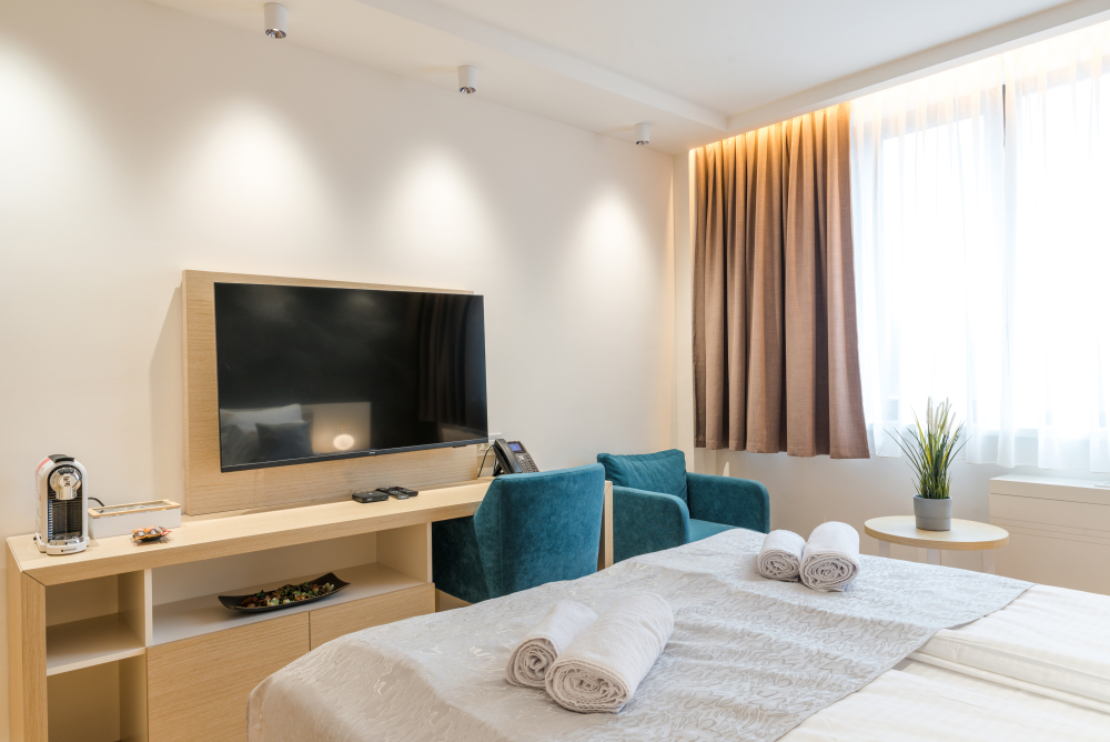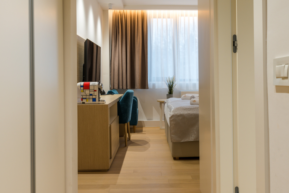 22m² studio apartman u Vrnjačkoj Banji predstavlja kompaktan i funkcionalan smeštaj u samom centru Vrnjačke Banje, idealan za boravak do 2 osobe. Ovaj moderno uređen studio apartman pažljivo je organizovan kako bi pružio maksimalan komfor na manjoj kvadraturi, uz prijatnu i opuštajuću atmosferu. Apartman poseduje praktičnu čajnu kuhinju, savršenu za kraći ili duži boravak, kao i sve neophodne sadržaje za bezbrižan odmor u Banji. Zahvaljujući prestižnoj lokaciji u blizini Zepterme spa & wellness centra, gosti ostvaruju i posebne pogodnosti – 50% popusta na spa & wellness sadržaje i 20% popusta u restoranu hotela, što ovaj studio čini odličnim izborom za parove i goste koji traže kvalitetan smeštaj u centru Vrnjačke Banje.
