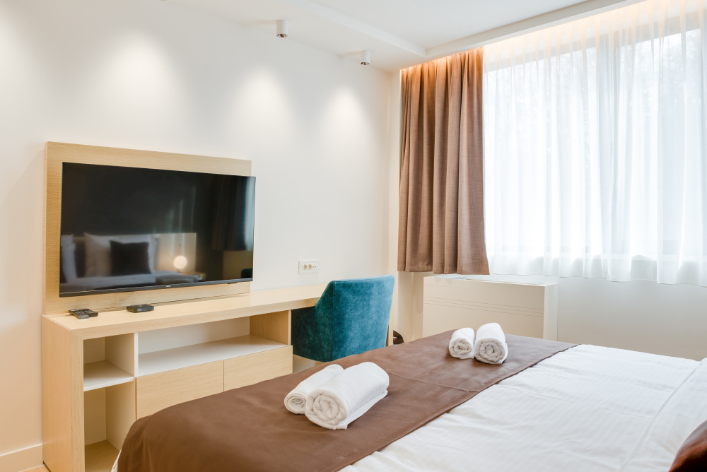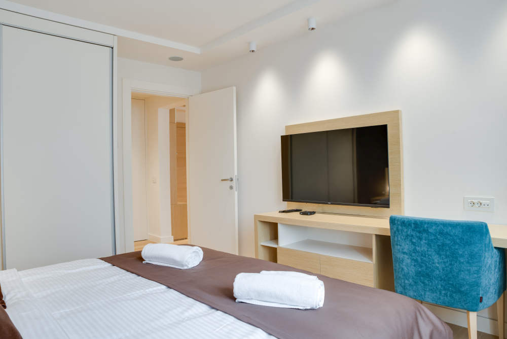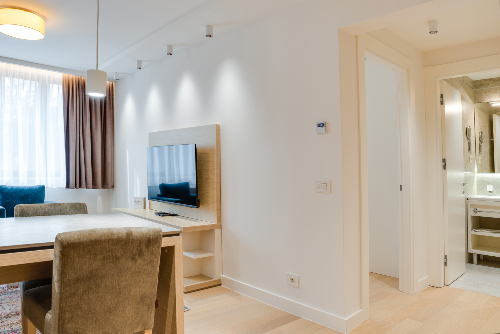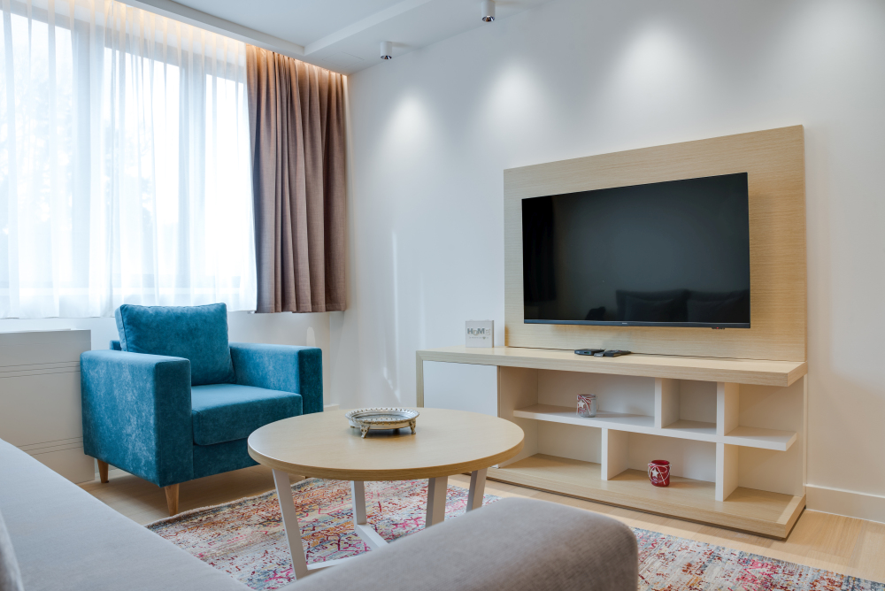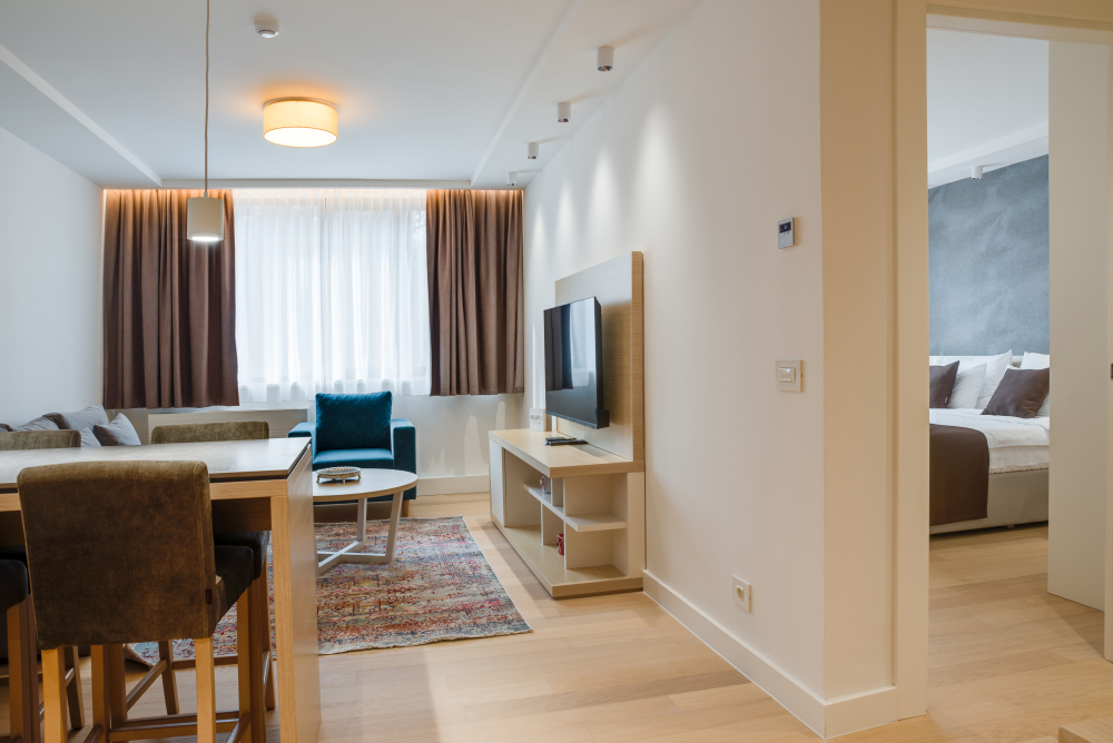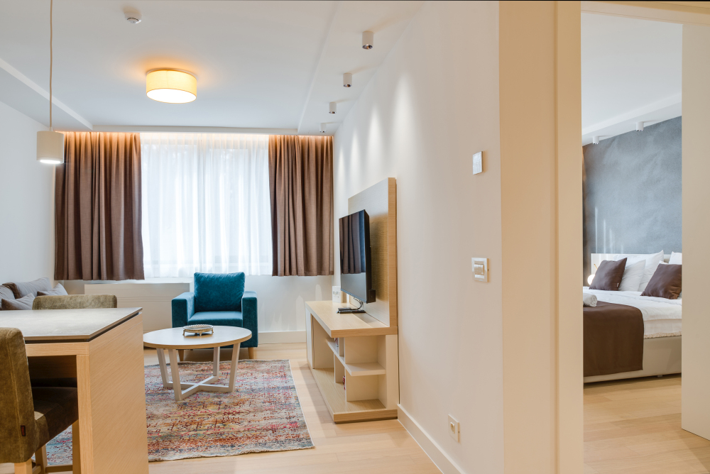 Apartman površine 44m² predstavlja premium smeštaj u samom centru Vrnjačke Banje, namenjen za udoban boravak do 4 osobe. Moderan i pažljivo uređen enterijer pruža osećaj komfora i privatnosti. Apartman ima pogled na mirnu ulicu, što garantuje tišinu i opuštajuću atmosferu, idealnu za pravi wellness odmor. Gosti ostvaruju i posebne pogodnosti – 50% popusta na spa & wellness sadržaje i 20% popusta u restoranu hotela, čineći ovaj premium apartman u Vrnjačkoj Banji savršenim izborom za sofisticiran i opuštajući boravak.