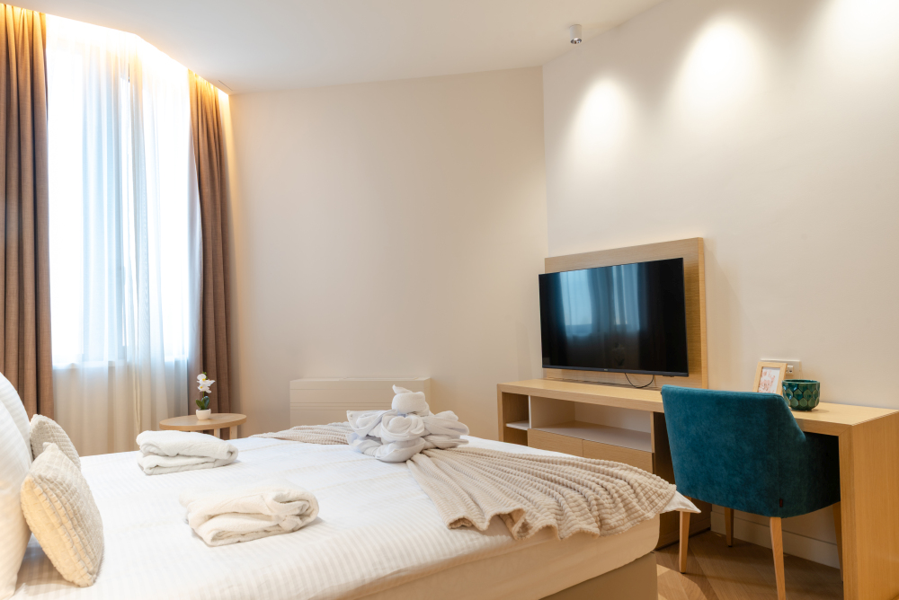 Apartman sa pogledom na šetalište u Vrnjačkoj Banji predstavlja premium smeštaj u samom centru Vrnjačke Banje, idealan za boravak do 4 osobe. Ovaj prostrani apartman od 57m² nalazi se uz Promenadu i pruža direktan pogled na šetalište, što ga čini savršenim izborom za goste koji žele moderan i komforan apartman u centru Vrnjačke Banje. Pažljivo uređen enterijer, funkcionalan raspored i potpuno opremljena kuhinja obezbeđuju sve što je potrebno za bezbrižan boravak. Zahvaljujući prestižnoj lokaciji i blizini Zepterme spa & wellness centra, gosti ostvaruju i posebne pogodnosti – 50% popusta na spa & wellness sadržaje i 20% popusta u restoranu hotela, što ovaj apartman čini odličnim izborom za luksuzan i opuštajući odmor u Vrnjačkoj Banji.