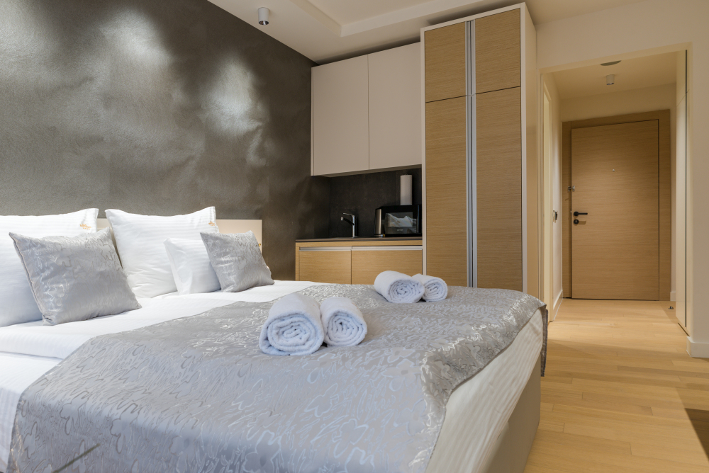 22m² studio apartman u Vrnjačkoj Banji predstavlja kompaktan i funkcionalan smeštaj u samom centru Vrnjačke Banje, idealan za boravak do 2 osobe. Ovaj moderno uređen studio apartman pažljivo je organizovan kako bi pružio maksimalan komfor na manjoj kvadraturi, uz prijatnu i opuštajuću atmosferu. Apartman poseduje praktičnu čajnu kuhinju, savršenu za kraći ili duži boravak, kao i sve neophodne sadržaje za bezbrižan odmor u Banji. Zahvaljujući prestižnoj lokaciji u blizini Zepterme spa & wellness centra, gosti ostvaruju i posebne pogodnosti – 50% popusta na spa & wellness sadržaje i 20% popusta u restoranu hotela, što ovaj studio čini odličnim izborom za parove i goste koji traže kvalitetan smeštaj u centru Vrnjačke Banje.